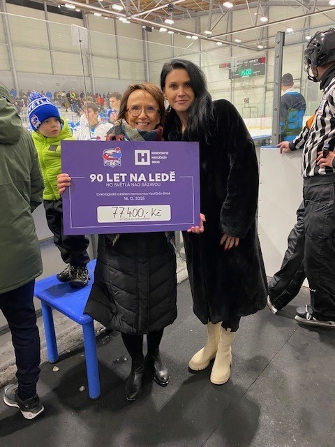 Hokejisté HC Světlá nad Sázavou v rámci oslav "90 let na ledě" pro nás uspořádali 14.12.2025 benefiční hokejové utkání. Jeho výtěžek - 77.400,- Kč putuje na Oddělení klinické a radiační onkologie a z rukou předsedy klubu Mgr. Jakuba Kořínka si jej převzala primářka oddělení MUDr. Ivana Havlíčková. Výtěžek nám pomůže zvýšit komfort pacientů při podávání chemoterapie.