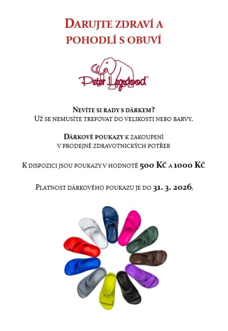 Na listopad a prosinec si naše lékárna nachystala dárkové poukazy na obuv do prodejny zdravotnických potřeb, které jsou vhodným dárkem pro Vaše blízké. Zaujmout by mohla též kolekce našich kvalitních čajů.