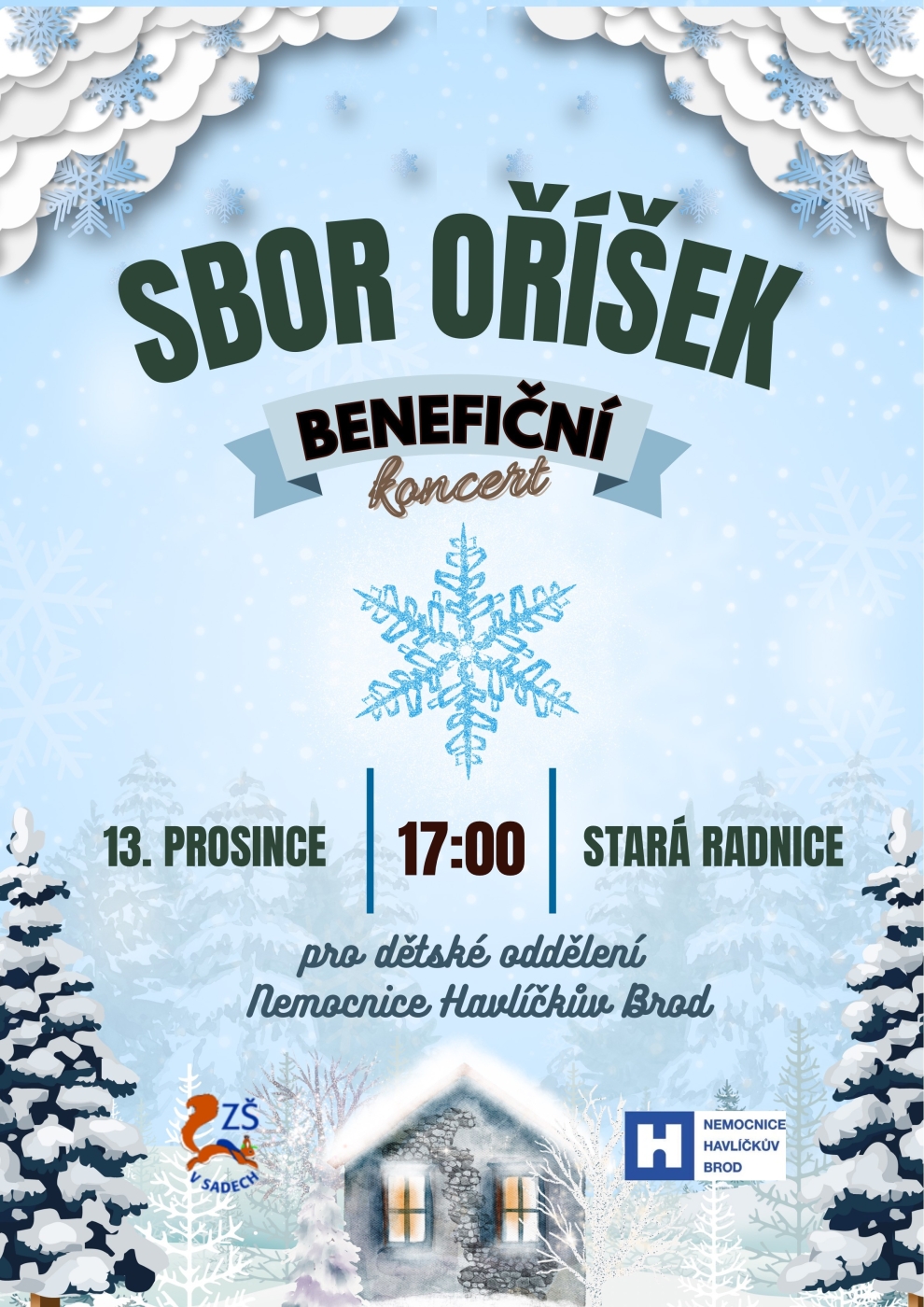 Opět po roce Vás můžeme pozvat na Vánoční koncert sboru OŘÍŠEK, který bude pod vedením Mgr. Jana Kletečky zpívat dne 13. prosince 2025 od 17:00 v Sále radnice Havlíčkův Brod. Výtěžek koncertu je určen Dětskému oddělení naší nemocnice.