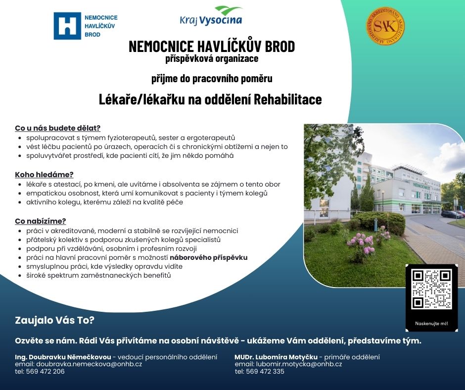 Hledáme lékaře/ lékařku se srdcem i rozumem pro rehabilitační oddělení.